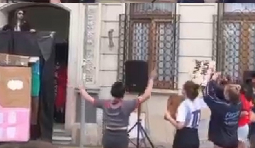 El establecimiento educativo fue sede de una parodia en la que un grupo de estudiantes puso en escena un acto del oficialismo, que quedó registrado en un video. Allí, personificaron a la expresidenta en un acto junto a sus seguidores.