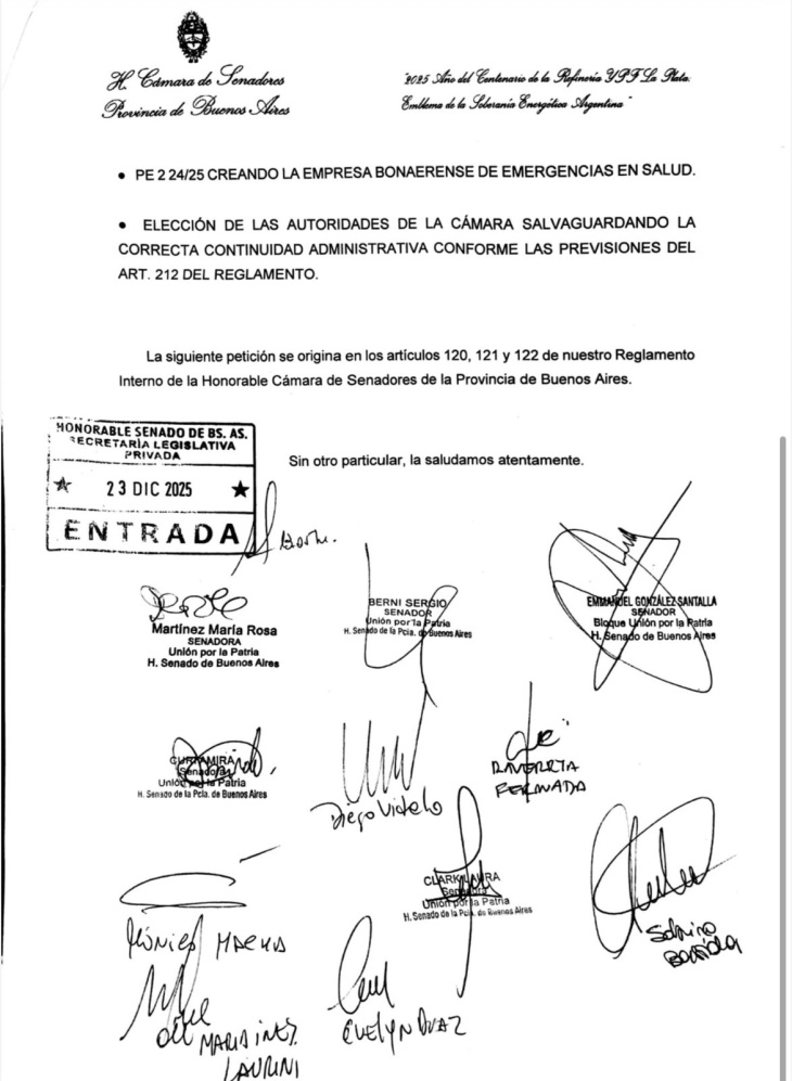 Según los legisladores, el calendario legislativo está al límite: si los proyectos PE 1 24/25 (Laboratorio Estatal) y PE 2 24/25 (Emergencias Médicas) no se tratan antes de fin de año, caducarán por el Artículo 138 del Reglamento, obligando a reiniciar un proceso que ya cuenta con media sanción de Diputados.