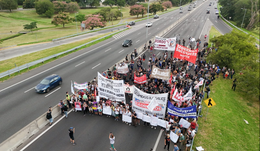 Trabajadores de Fate, CTERA y organizaciones sociales cortaron la Autopista Panamericana a la altura de la localidad bonaerense de Virreyes para mostrar su malestar por los despidos de toda la planta.