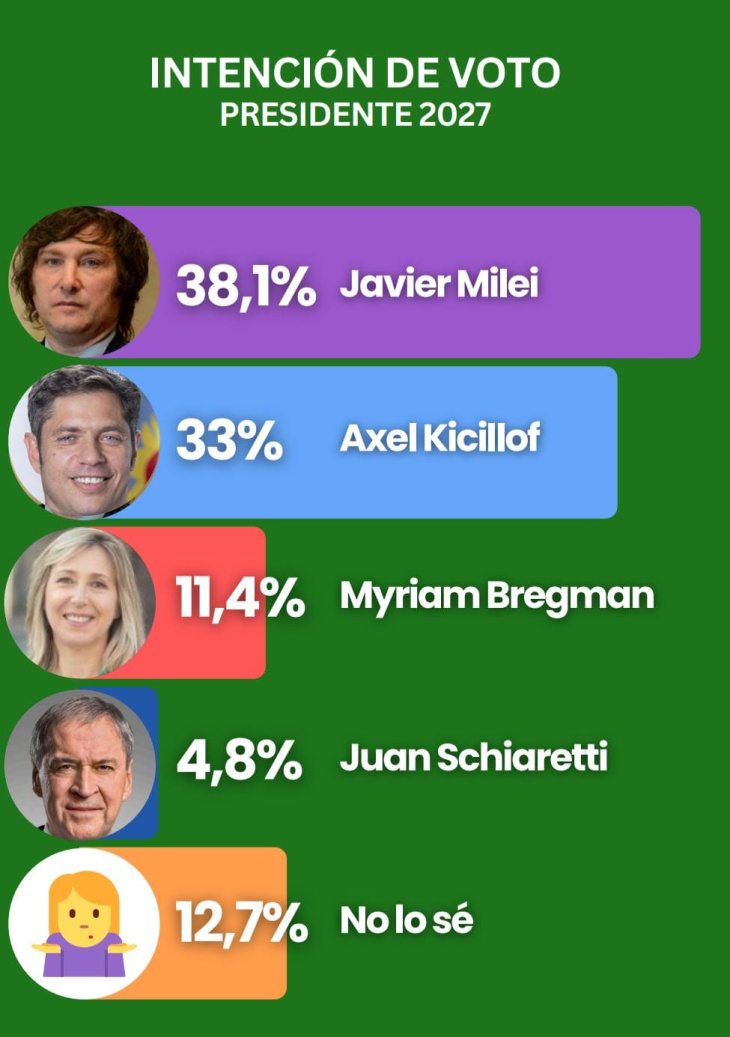 El dato disruptivo lo aporta Myriam Bregman, quien con un 11,4% de intención de voto se posiciona como una tercera vía competitiva. Además, la dirigente de izquierda lidera la imagen positiva nacional con un 42,1%.
